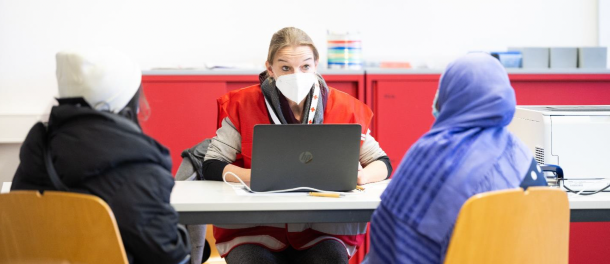 Um diese Personen besser zu erreichen, unterstützt das Bundesamt für Gesundheit seit Sommer 2021 ein Projekt des SRK mit dem Ziel eines «chancengleichen Zugangs zu Covid-19-Angeboten». In einem ersten Schritt wurde im September 2021 in den Kantonen eine Bestandsaufnahme aller bereits vorhandenen, niederschwelligen Covid-19-Angebote in den Bereichen Beratung, Impfen, Testen durchgeführt. Das Ergebnis war klar: Es gab Lücken beim Covid-19-Angebot für benachteiligte Bevölkerungsgruppen, insbesondere bei Menschen mit geringen Kenntnissen einer Landessprache. Die Erfahrungen aus den Kantonen deuteten darauf hin, dass gerade diese Menschen ein grosses Bedürfnis nach einem direkten Austausch mit Gesundheitsfachpersonen haben.