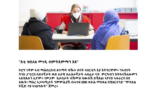 Basierend auf diesen Erkenntnissen lancierte das SRK ein Pilotprojekt im Kanton Bern. In Kehrsatz, einer Vorortsgemeinde von Bern, versammelten sich im November 2021 mehr als ein Dutzend aus Eritrea eingewanderte Einwohnerinnen und Einwohner zu einem Sensibilisierungsworkshop, welcher das SRK zusammen mit public health services, einer Beratungsfirma in den Bereichen Prävention und Gesundheitsförderung, organisierte. Sie hörten wissenschaftlich fundierte Informationen zu Covid-19 von der einzigen aus Eritrea stammenden Ärztin der Schweiz. Ihr konnten sie all ihre Fragen stellen. In einem weiteren Workshop beantworteten Gesundheitsfachpersonen Fragen auf Deutsch und die Antworten wurden jeweils übersetzt. Nach den Veranstaltungen entschieden sich rund 30 Personen für eine erste Impfung im Kleinbus.