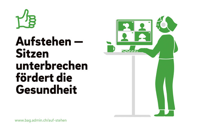 Die Strategie «Gesundheit2030» des Bundesrats definiert die Veränderungen in der Arbeitswelt als eine der zentralen Herausforderungen für die öffentliche Gesundheit. Neue Arbeitsbedingungen bieten auf der einen Seite durchaus Chancen: Sie können zur Vereinfachung von Prozessen führen, Doppelspurigkeiten reduzieren oder die Vereinbarkeit von Familie und Beruf verbessern. Die neuen Arbeitsformen können aber auch gesundheitliche Risiken verursachen, zum Beispiel weil Pausen nicht eingehalten werden oder sich Arbeitnehmende zu wenig bewegen. Eine Isolation kann auch Auswirkungen auf die psychische Gesundheit oder das Suchtverhalten haben (etwa auf den Alkoholkonsum oder auf Verhaltenssüchte). Deshalb fordert der Bundesrat, die Gesundheit in der Arbeitswelt zu verbessern: Bund, Kantone und Arbeitgeber sollen die Chancen nutzen, die sich durch neue Arbeitsformen ergeben, und die dadurch entstehenden Risiken möglichst reduzieren.
