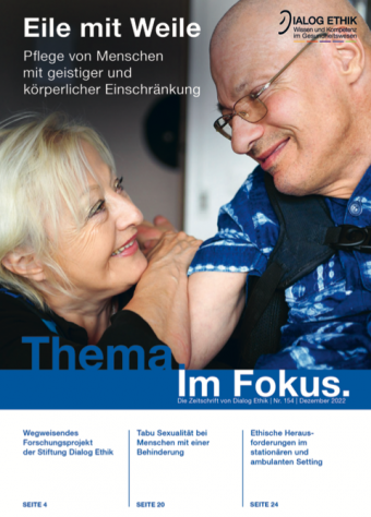 Menschen mit einer Behinderung werden oftmals nicht ausreichend in die Entscheidungsfindung einerTherapieform miteinbezogen. Ein Forschungsprojekt der Stiftung Dialog Ethik hat untersucht, welche Unterstützung das Fachpersonal im ambulanten und im stationären Bereich benötigt, um seine Patienten adäquat zu behandeln, zu pflegen und zu therapieren. Es besteht grosser Handlungsbedarf: Dieser reicht von einem stärkeren Einbezug der Patienten und der Angehörigen bis zu einem besseren Austausch zwischen den Fachpersonen.